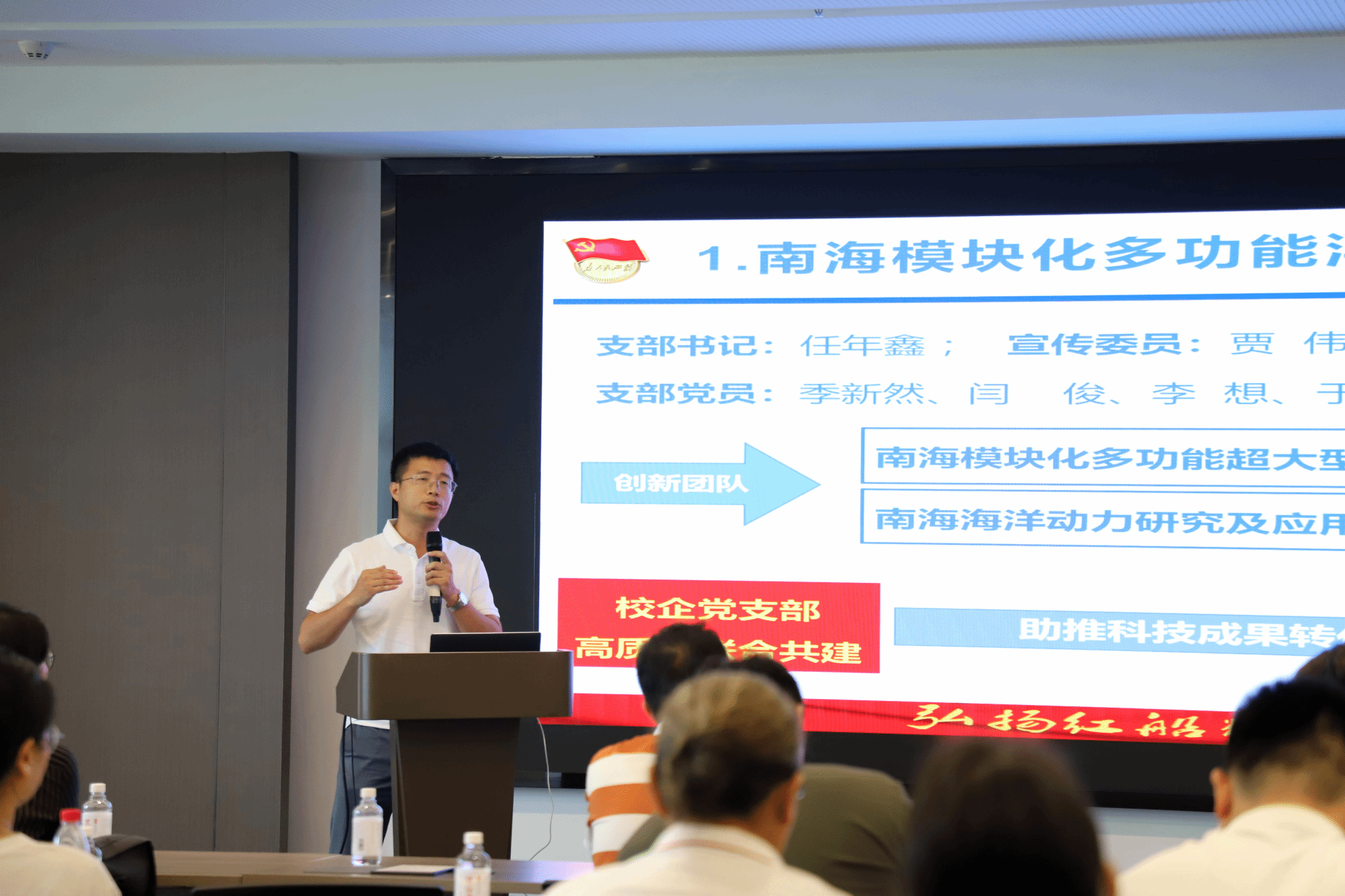 海洋科学与工程学院副院长、任年鑫教授,介绍了其科研 团队与行业领军企业开展产学研合作情况及代表性应用成果。团队重点对标海上风电及海洋牧场两大产业需求,提出了南海漂浮式海上风电离岸码头安装解决方案及“ 生态渔业-绿色能源-海洋文旅 ”多产融合发展的新模式。